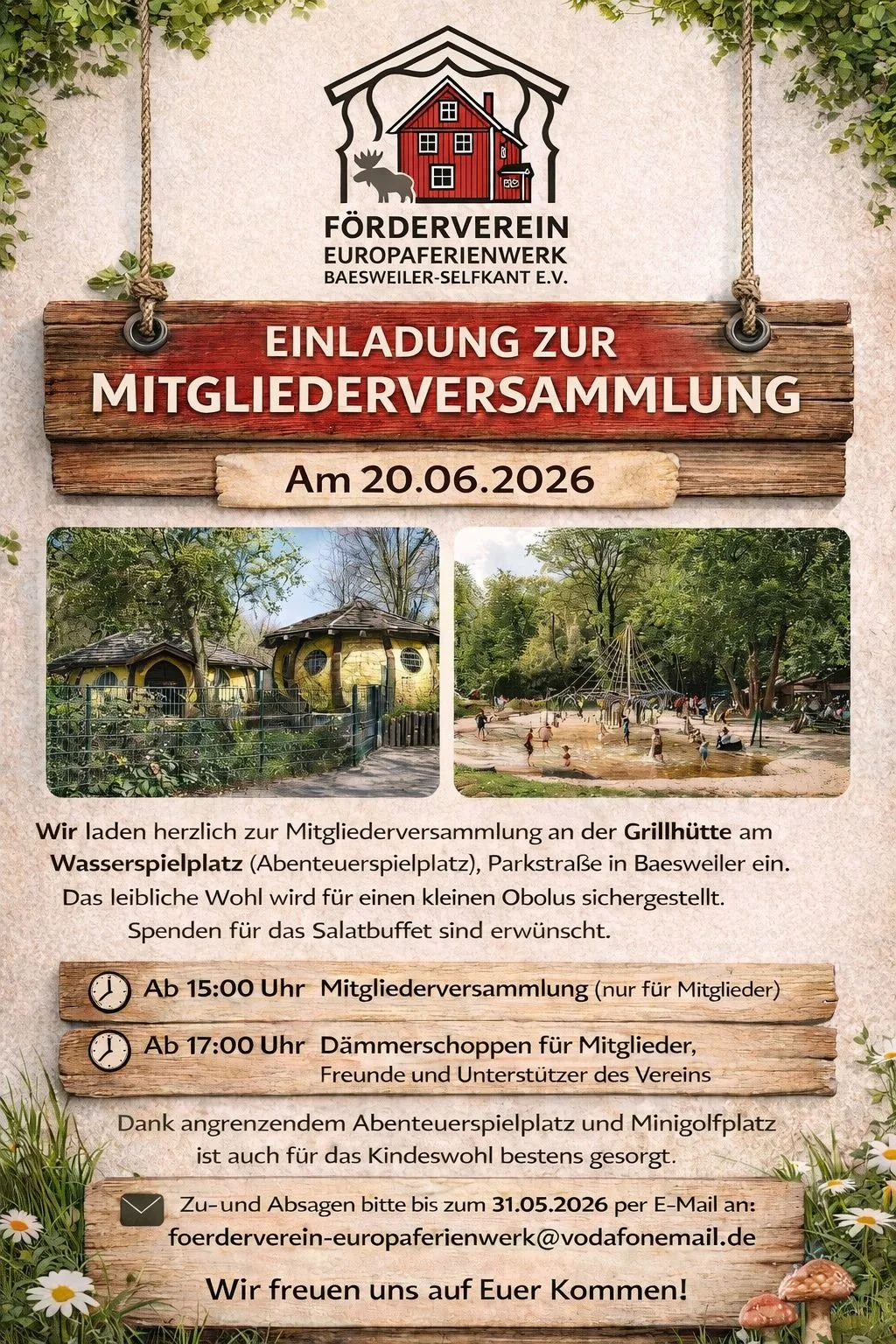 Wir freuen uns auf Ihre/Eure Mitgliedschaft (jährlicher Mindestbeitrag 12 €) im Förderverein des Europaferienwerk Baesweiler-Selfkant.